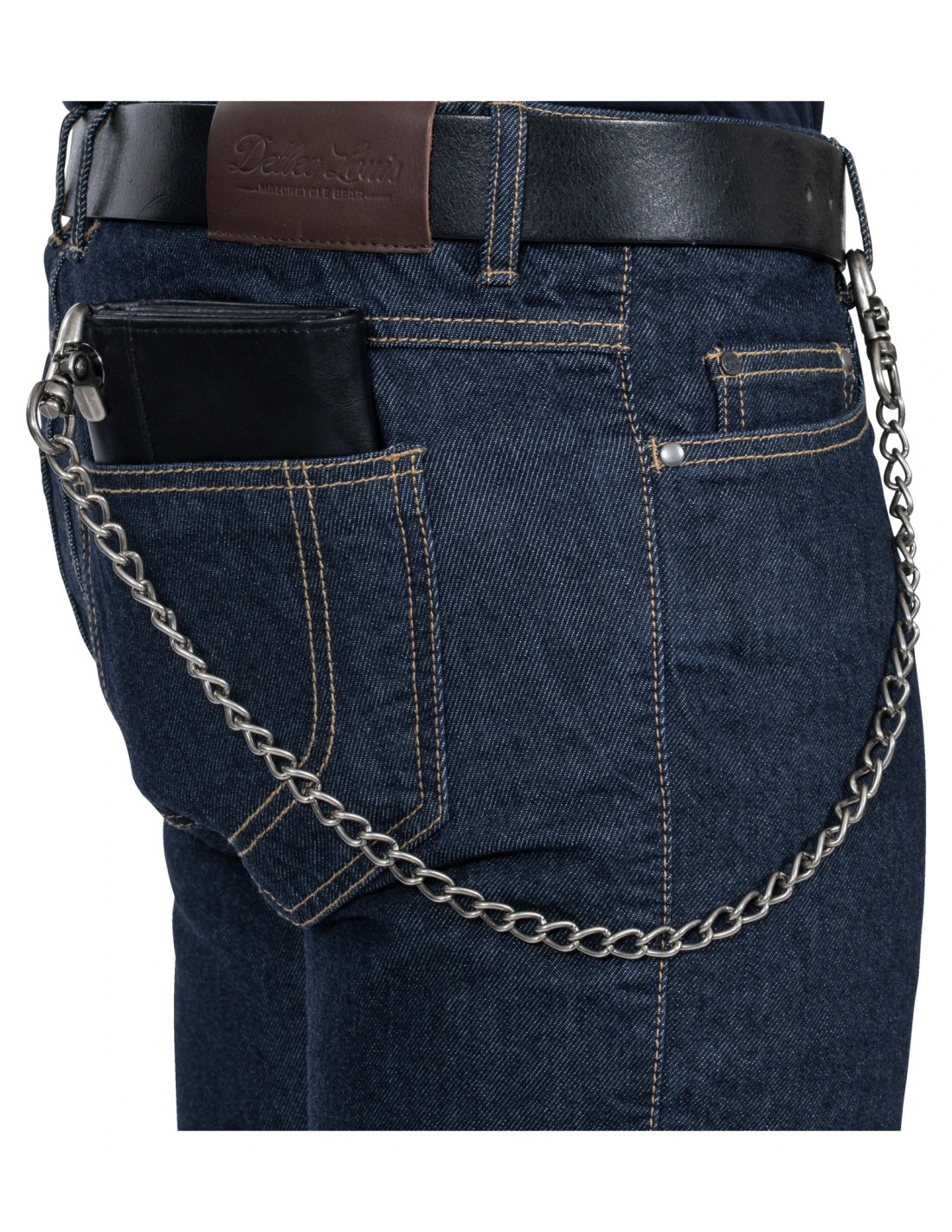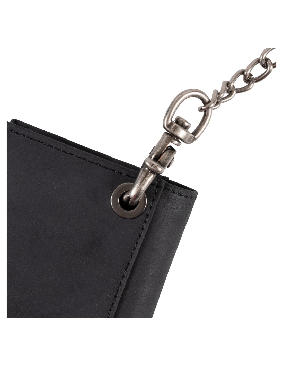 Cartera de piel de vacuno 100% muy resistente y elegante. Guarda tus documentos, tarjetas, billetes y monedas de forma ordenada en sus numerosos compartimentos. Su ojal de anilla permite sujetarla a una cadena elegante para mayor seguridad (por ejemplo, a un cinturón o a una trabilla).