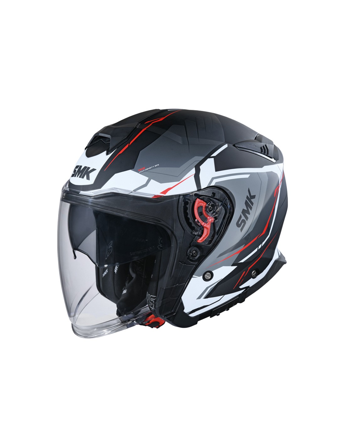 SMK GTJ es un casco jet elegante, deportivo y sofisticado a la vez, para recorridos urbanos y turismo. Está fabricado en 2 tamaños de calota, para optimizar el ajuste, permitiendo así la máxima comodidad durante los viajes largos. Su amplia y larga pantalla, resistente a rayaduras, ofrece máxima visión y seguridad durante la conducción.