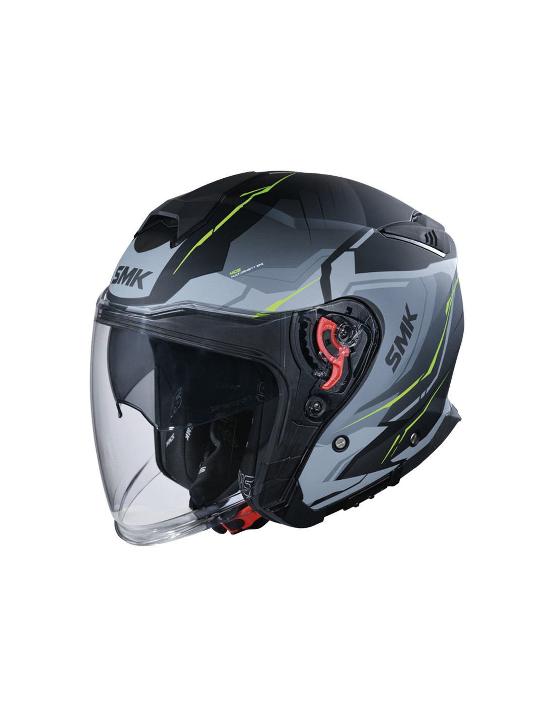 SMK GTJ es un casco jet elegante, deportivo y sofisticado a la vez, para recorridos urbanos y turismo. Está fabricado en 2 tamaños de calota, para optimizar el ajuste, permitiendo así la máxima comodidad durante los viajes largos. Su amplia y larga pantalla, resistente a rayaduras, ofrece máxima visión y seguridad durante la conducción.