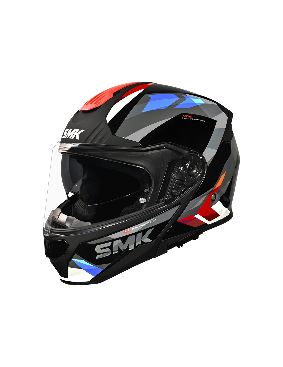 Casco abatible para los usuarios más exigentes. La doble homologación P / J, permite su uso como casco abierto y casco integral, garantizando la máxima seguridad en ambas condiciones. Un sistema de ventilación eficiente proporciona la máxima comodidad al conductor, incluso en viajes largos y condiciones climáticas extremas. La pantalla extra ancha proporciona al usuario una excelente vista de la carretera. SMK Gullwing incluye una amplia gama de características como el visor solar retráctil, protección contra el viento y pantalla preparada para Pinlock® (opcional) para evitar el empañamiento.