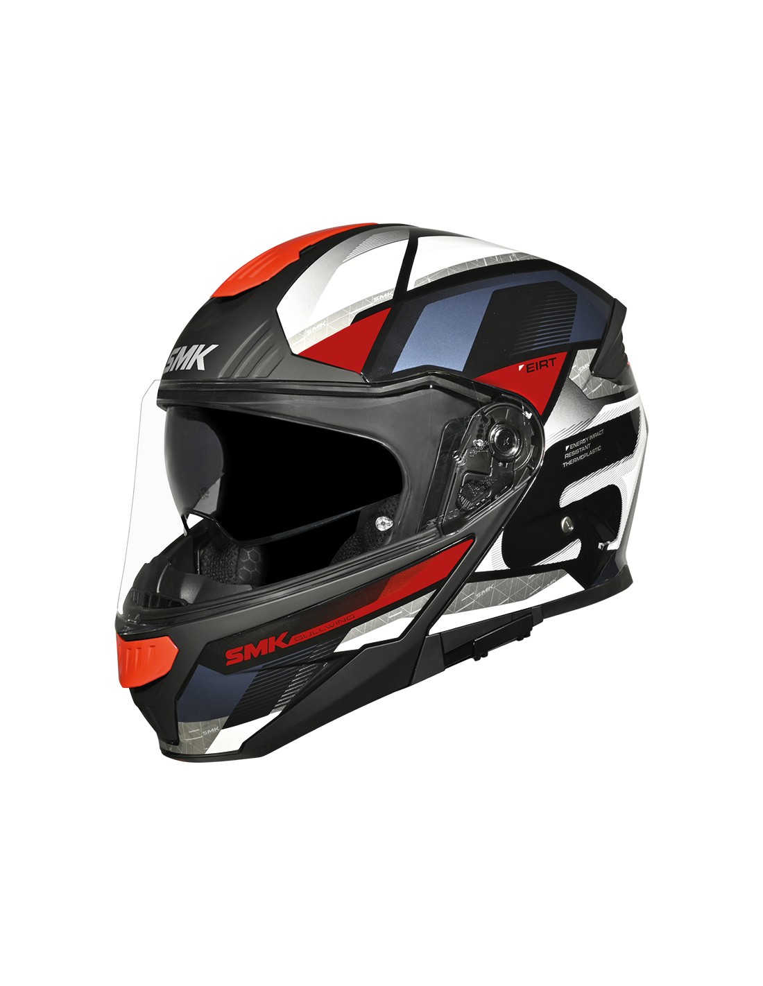 Casco abatible para los usuarios más exigentes. La doble homologación P / J, permite su uso como casco abierto y casco integral, garantizando la máxima seguridad en ambas condiciones. Un sistema de ventilación eficiente proporciona la máxima comodidad al conductor, incluso en viajes largos y condiciones climáticas extremas. La pantalla extra ancha proporciona al usuario una excelente vista de la carretera. SMK Gullwing incluye una amplia gama de características como el visor solar retráctil, protección contra el viento y pantalla preparada para Pinlock® (opcional) para evitar el empañamiento.