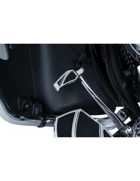 Una actualización masiva de la clavija de cambio original con un diseño angular, líneas nítidas y un sutil efecto de traspaso que complementa la línea completa de accesorios Kuryakyn Phantom. Hecho de aluminio de calidad con almohadilla de goma EPDM de primera calidad para una tracción segura al cambiar de marcha.
